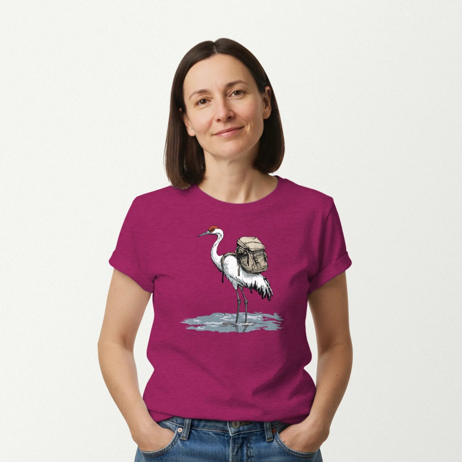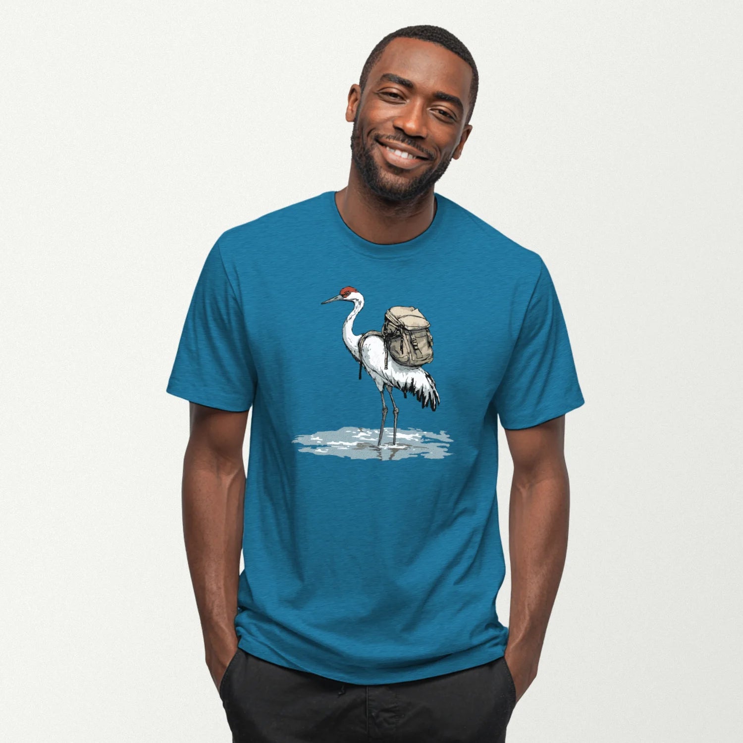 Crane Backpacker In Water T-Shirt