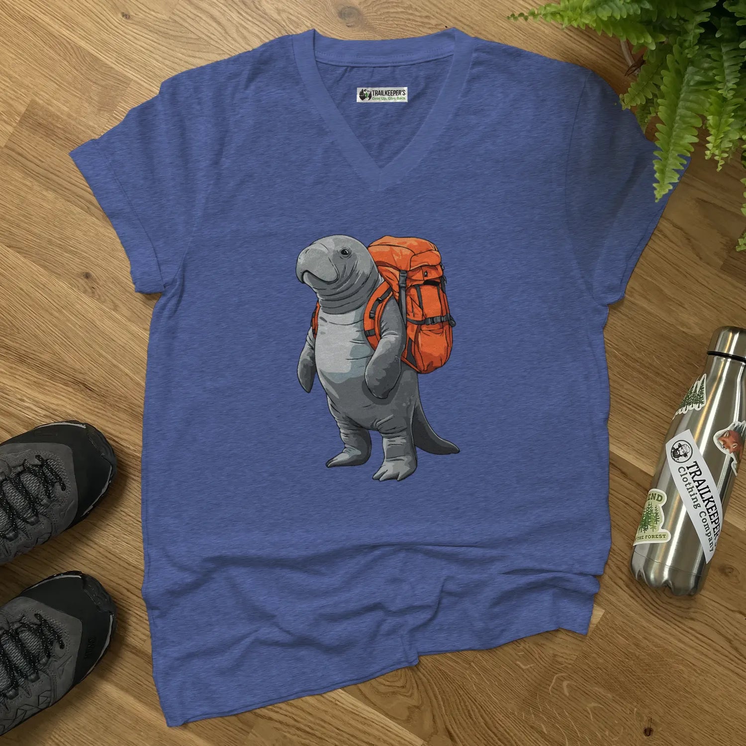Manatee Backpacker V-Neck T-Shirt