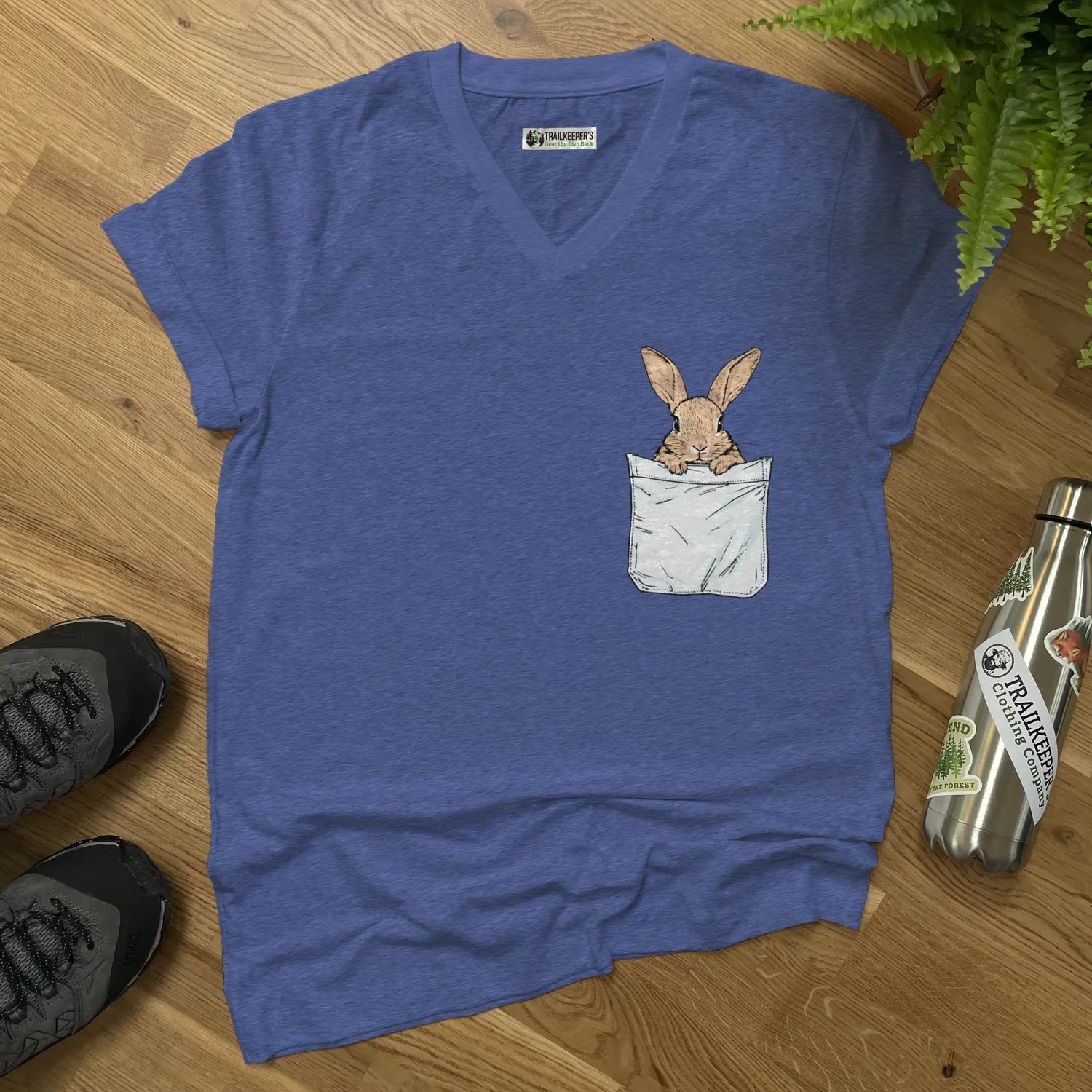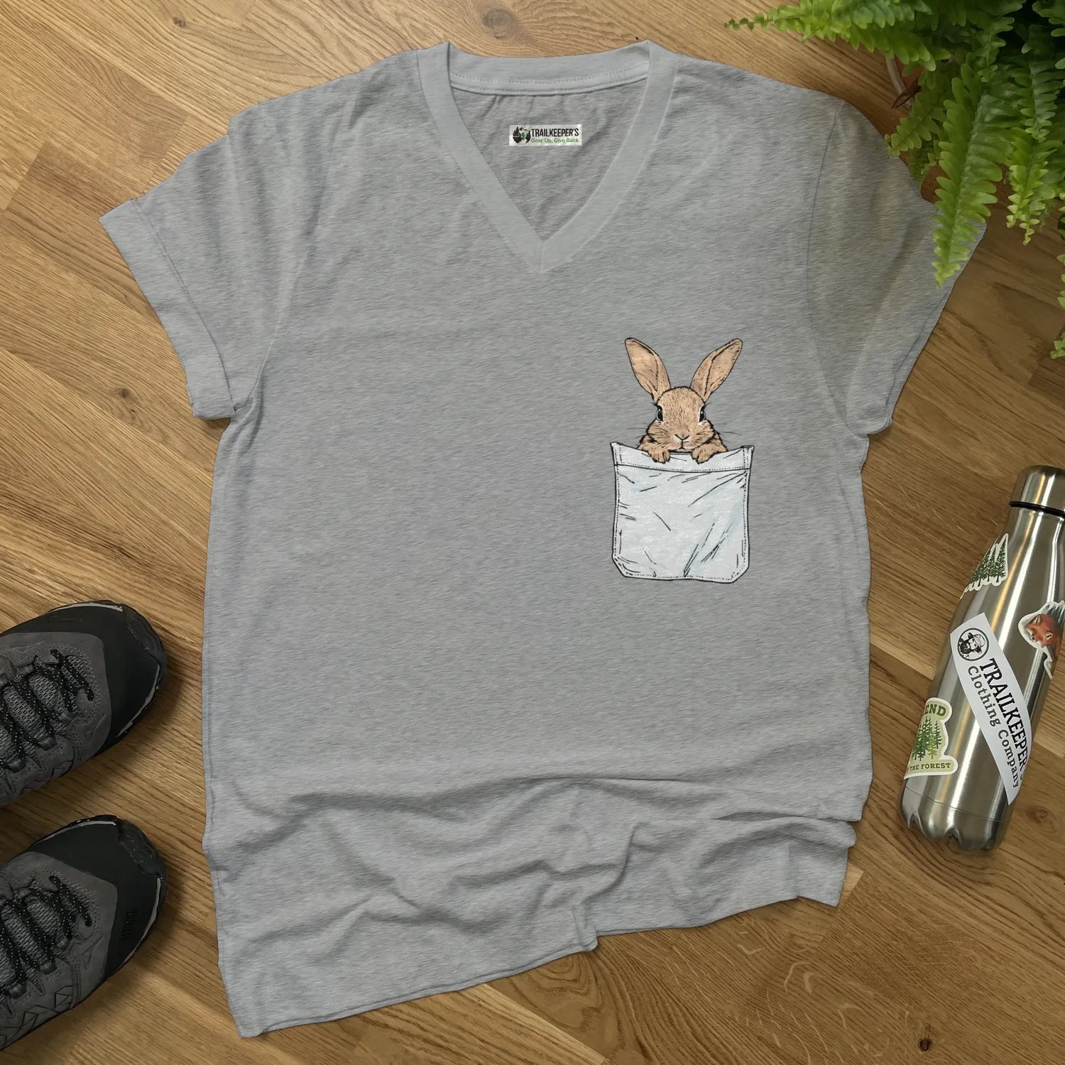 Rabbit In Pocket V-Neck T-Shirt