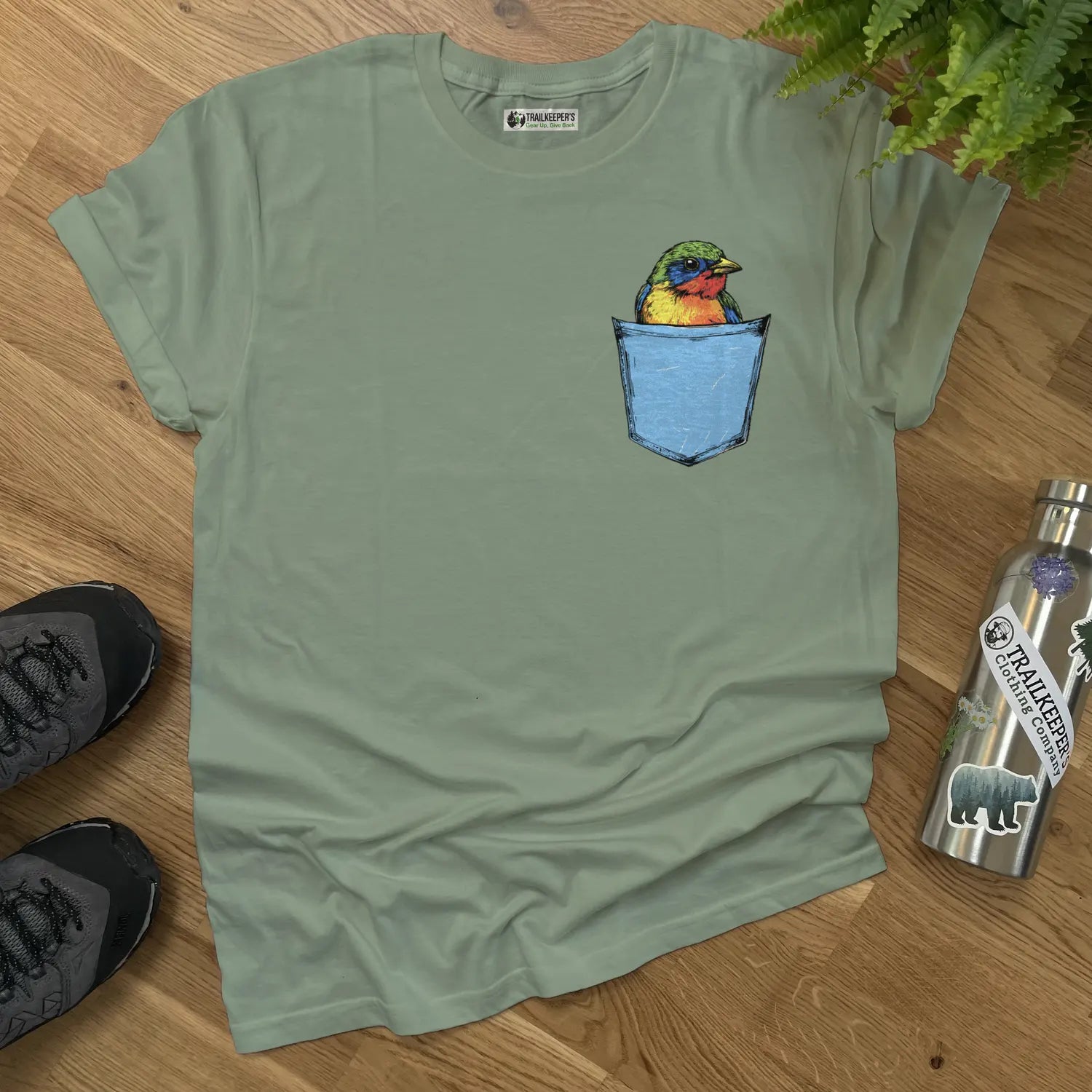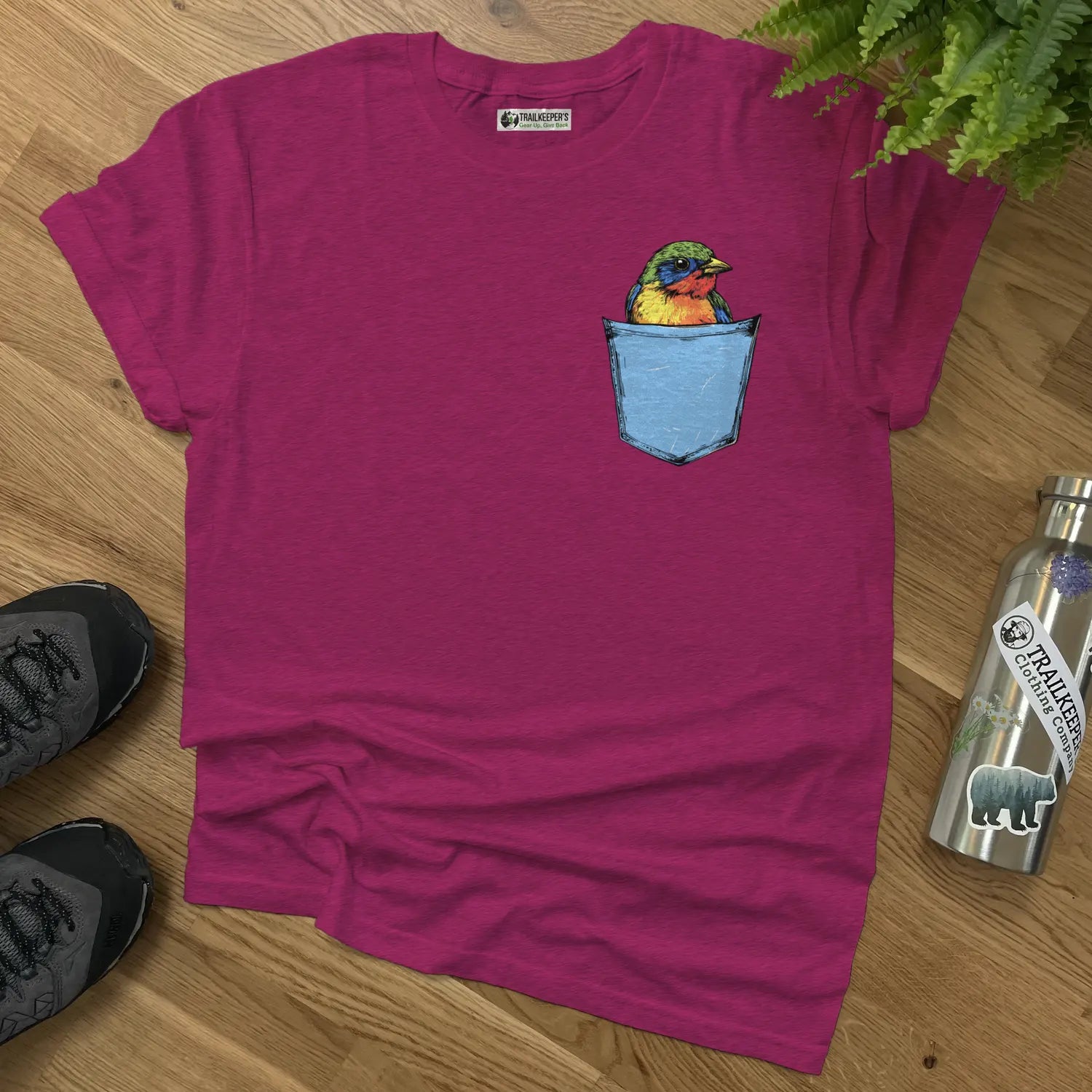 Colorful Bird In Pocket T-Shirt