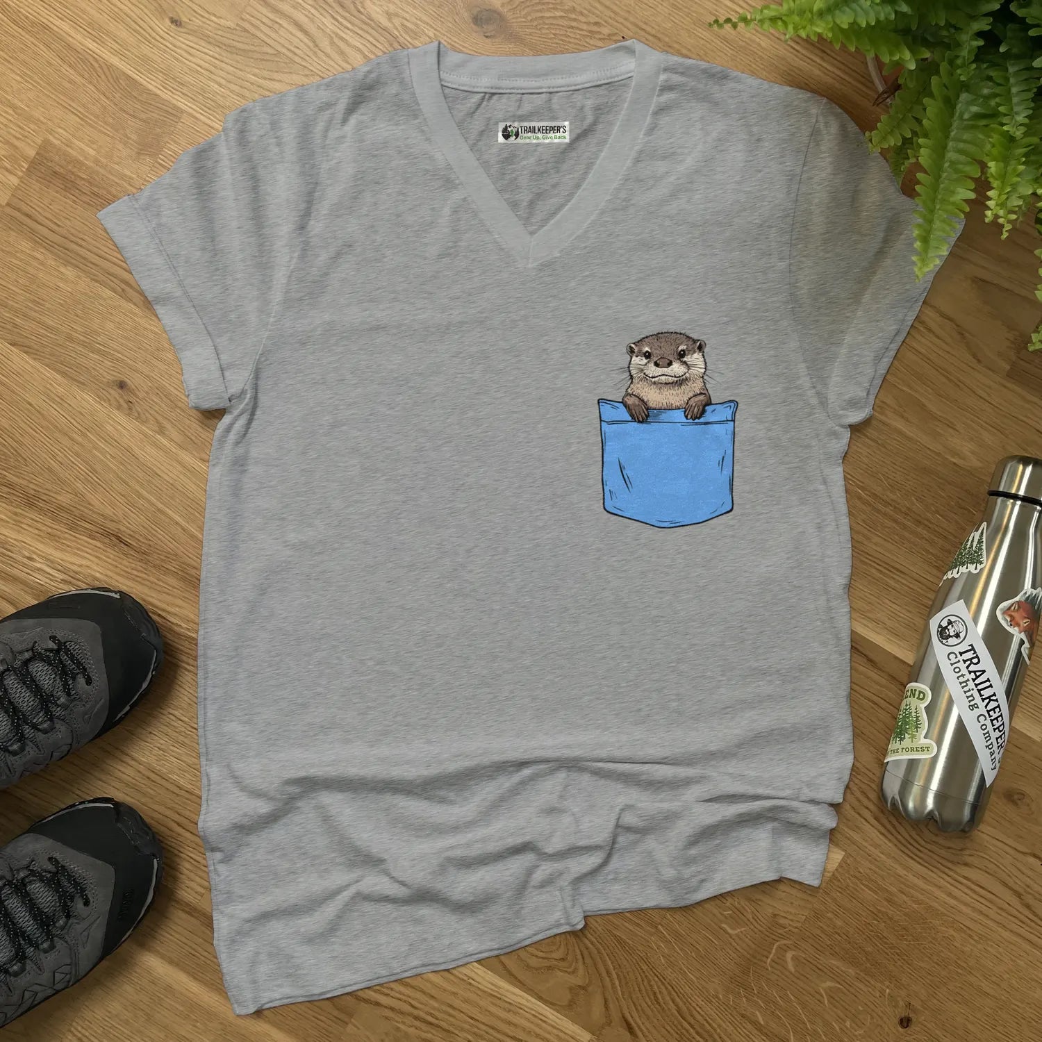 Otter In Pocket V-Neck T-Shirt
