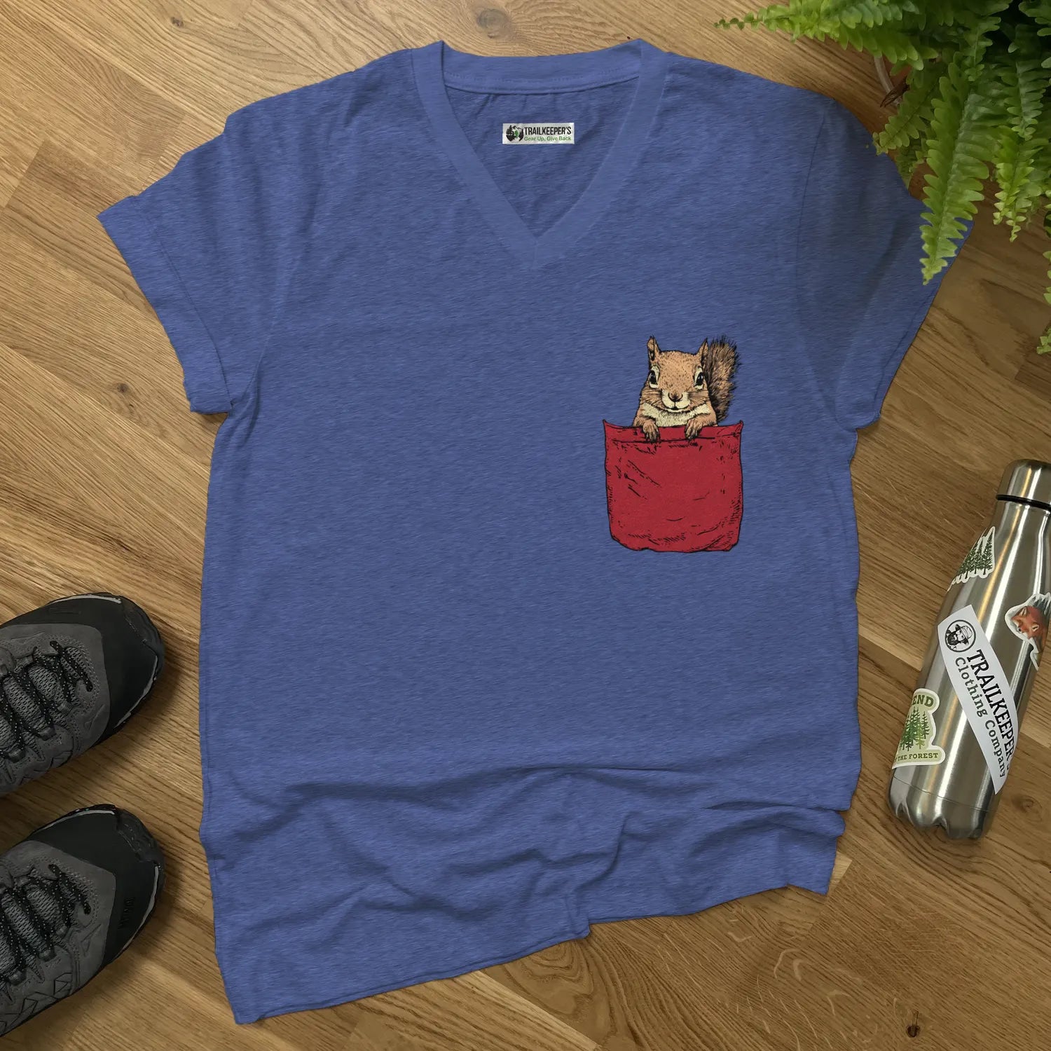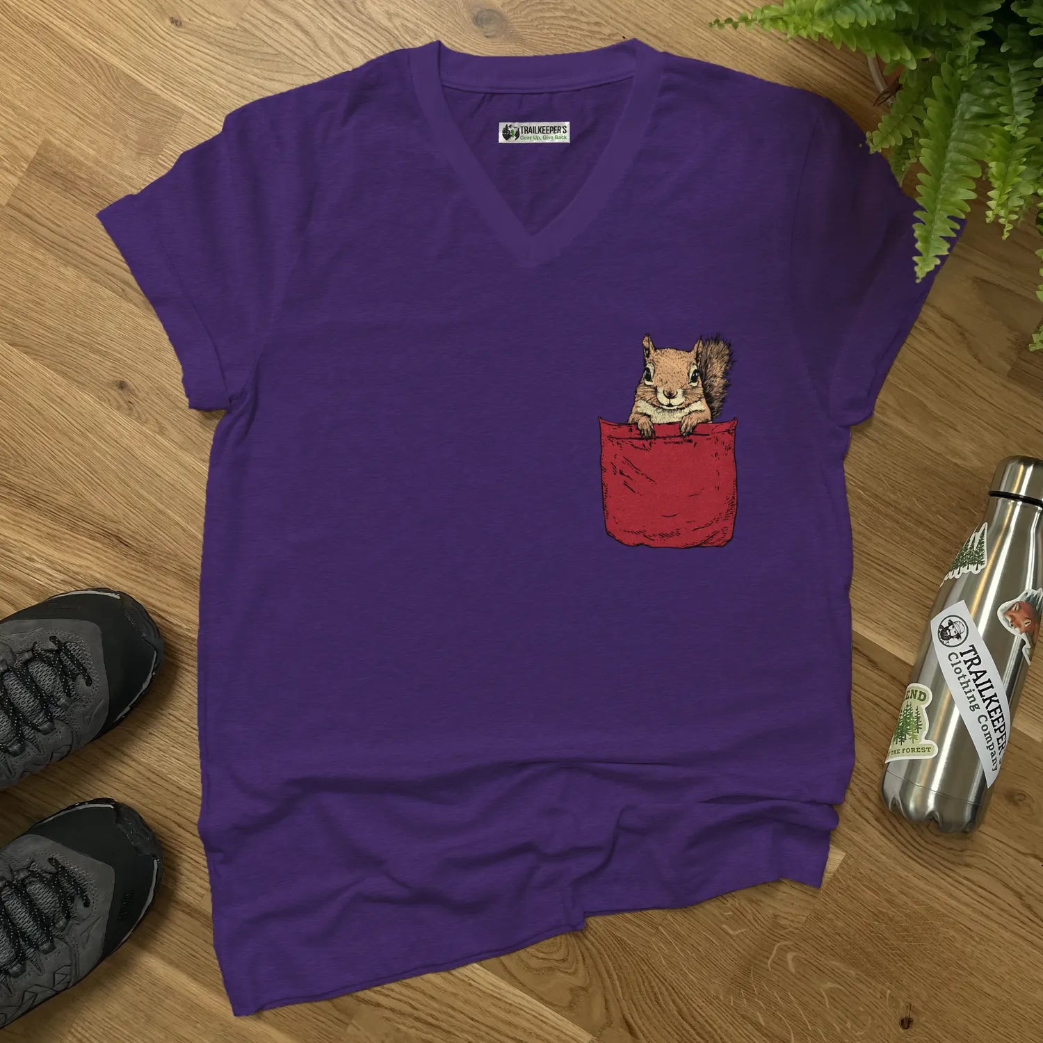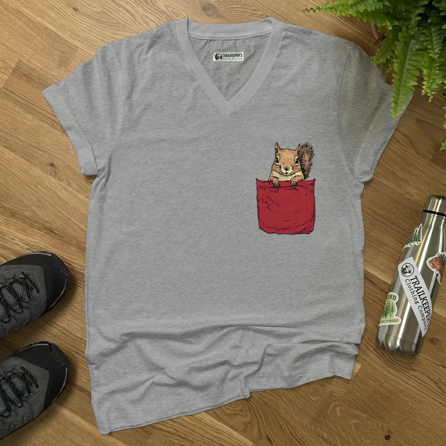 Squirrel In Pocket V-Neck T-Shirt
