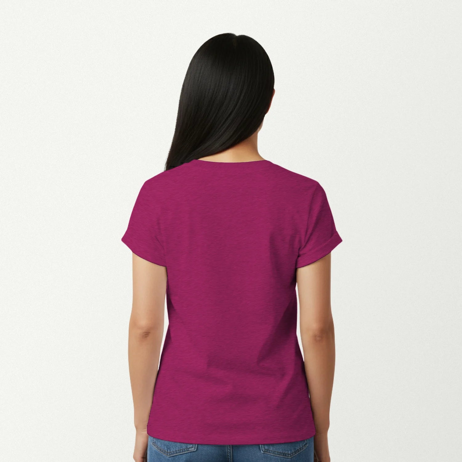 This T-shirt has a straight hem and can be worn tucked or untucked.