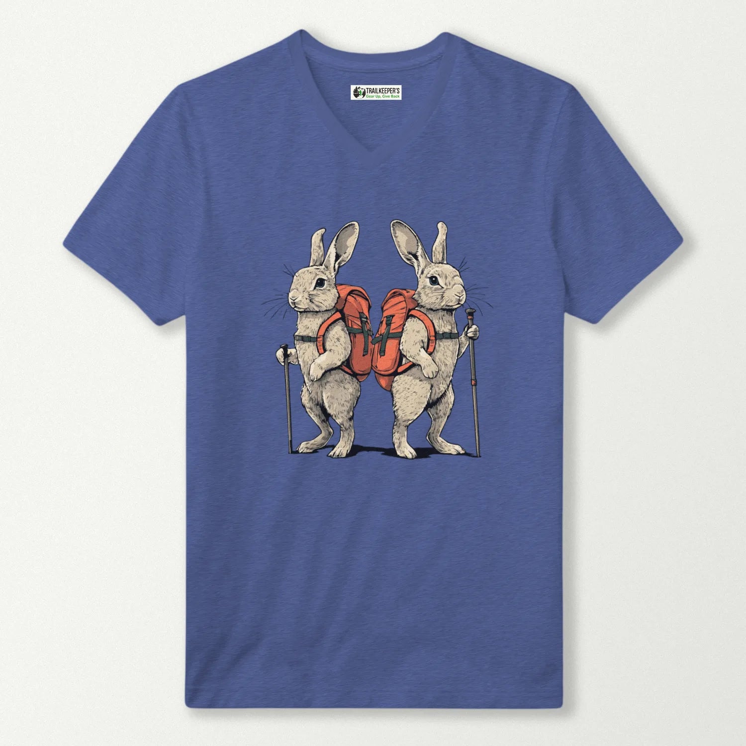 Rabbit Backpacker Couple V-Neck T-Shirt