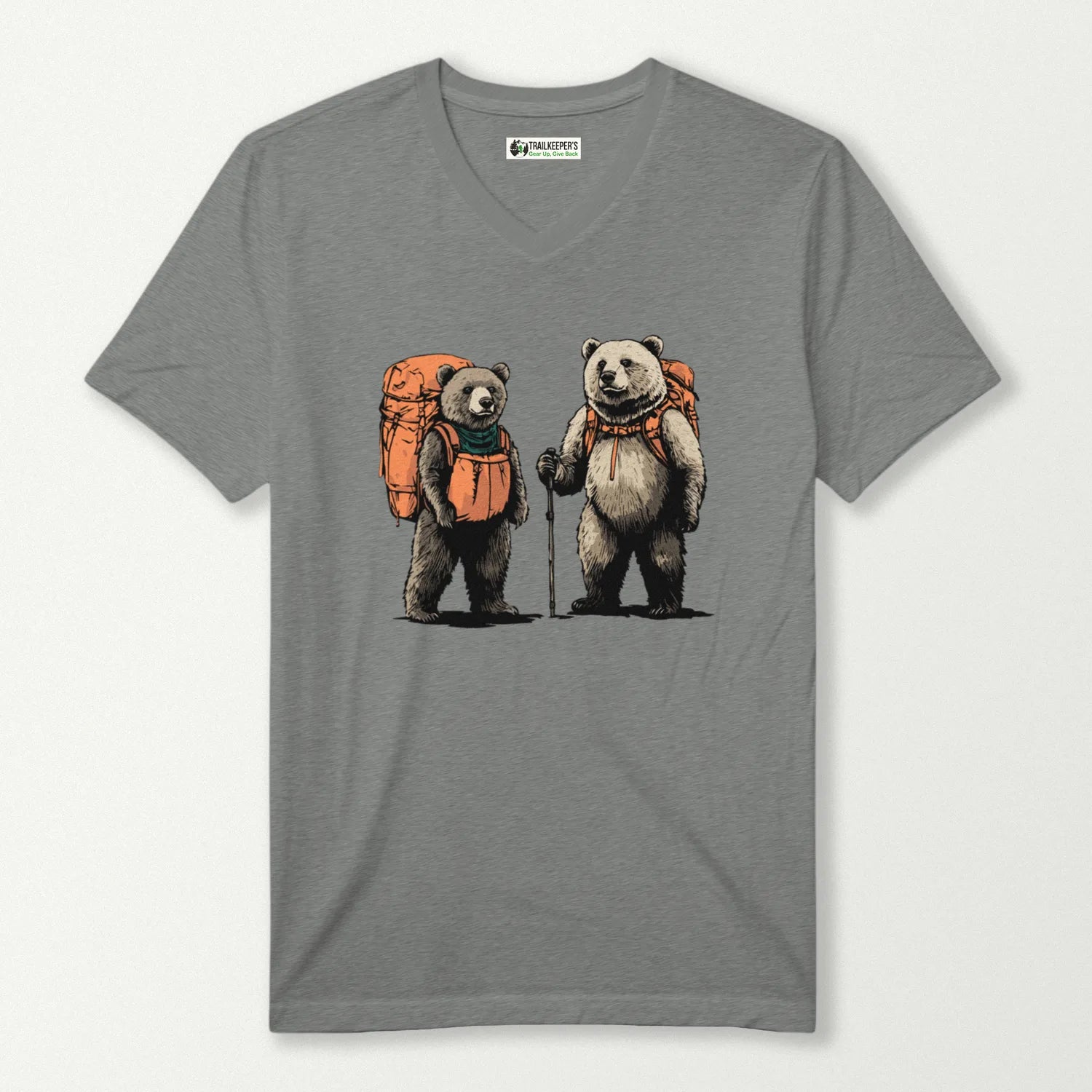 Bear Backpacker Couple V-Neck T-Shirt
