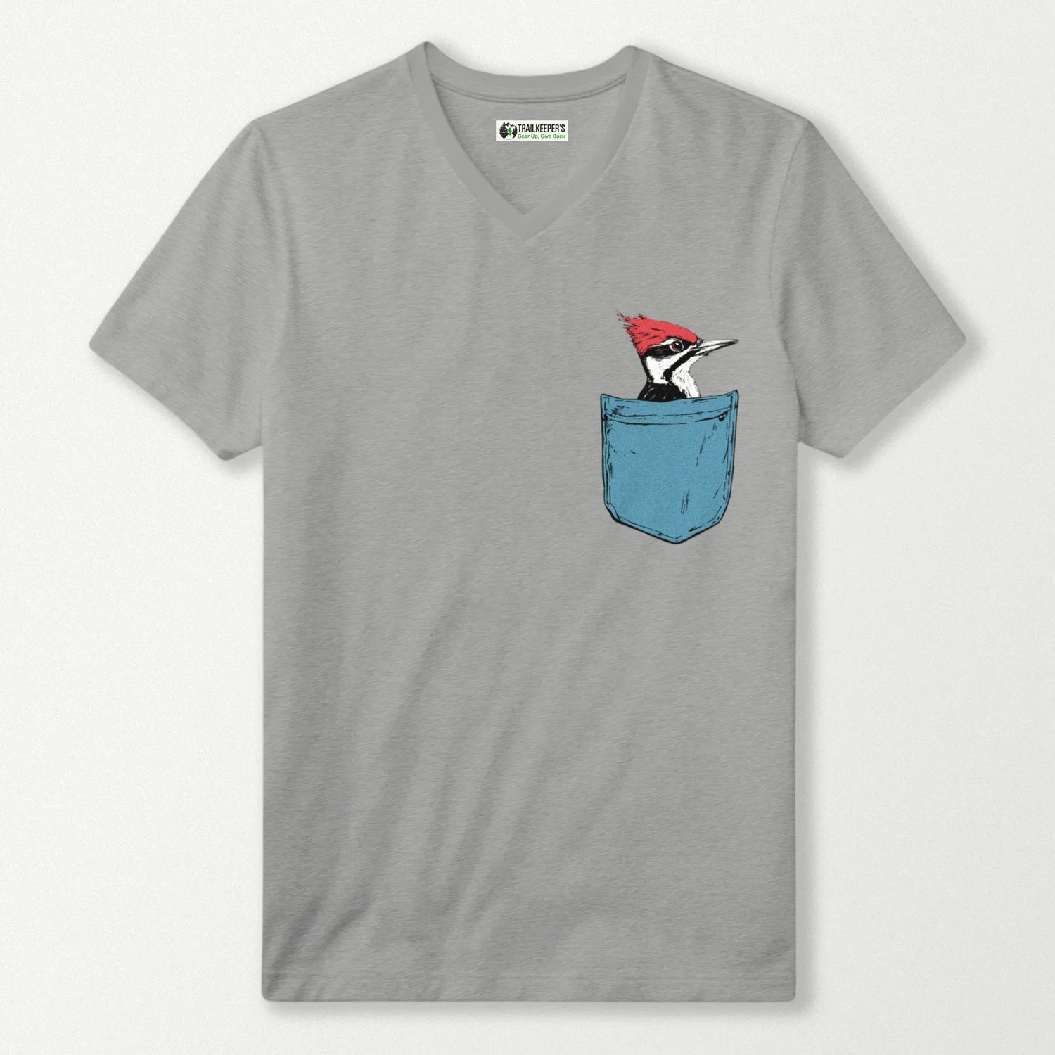 Pileated Woodpecker In Pocket V-Neck T-Shirt
