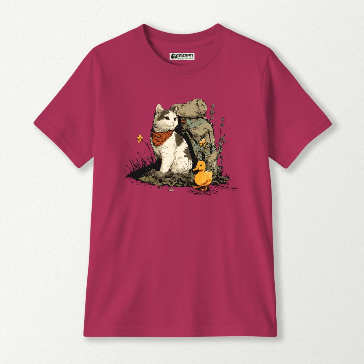 Cat Backpacker With Duckling Kids T-Shirt