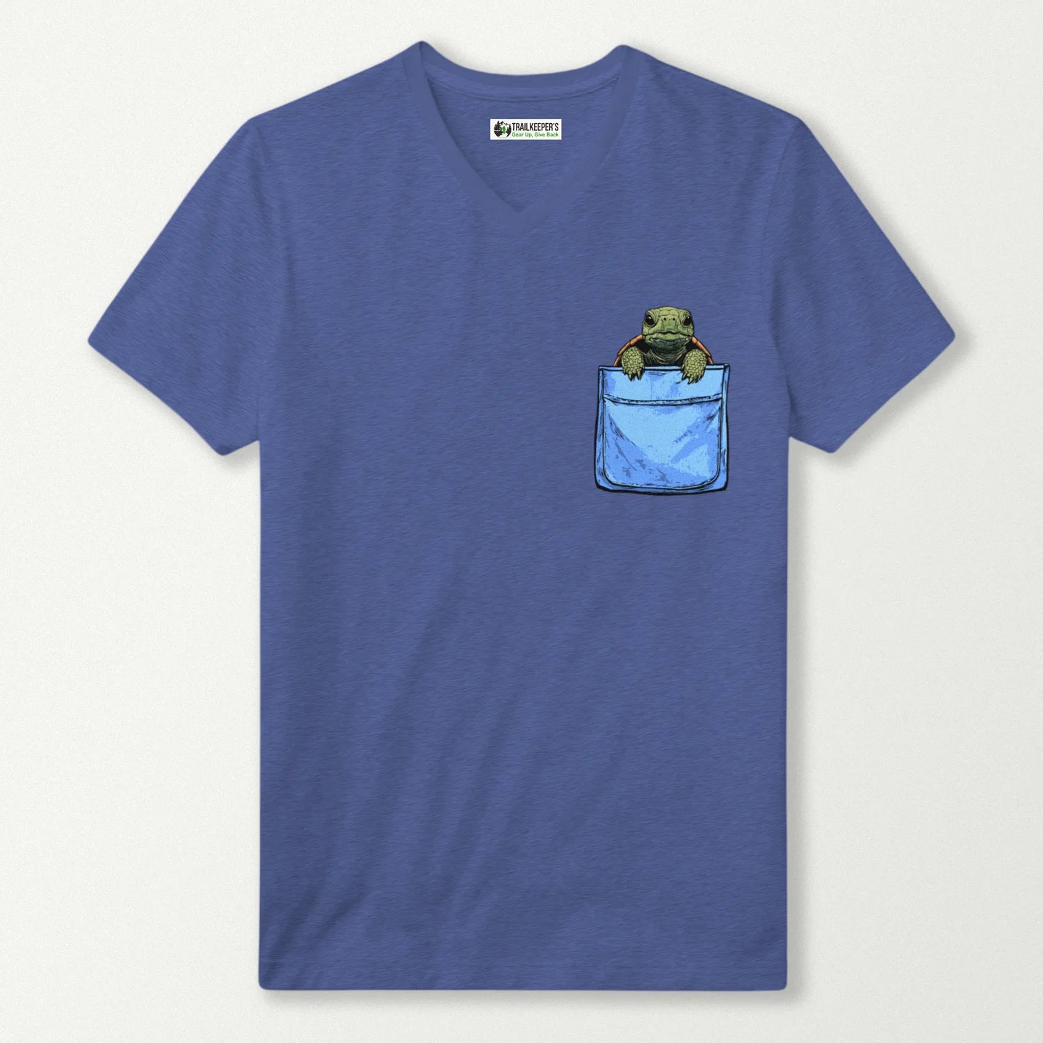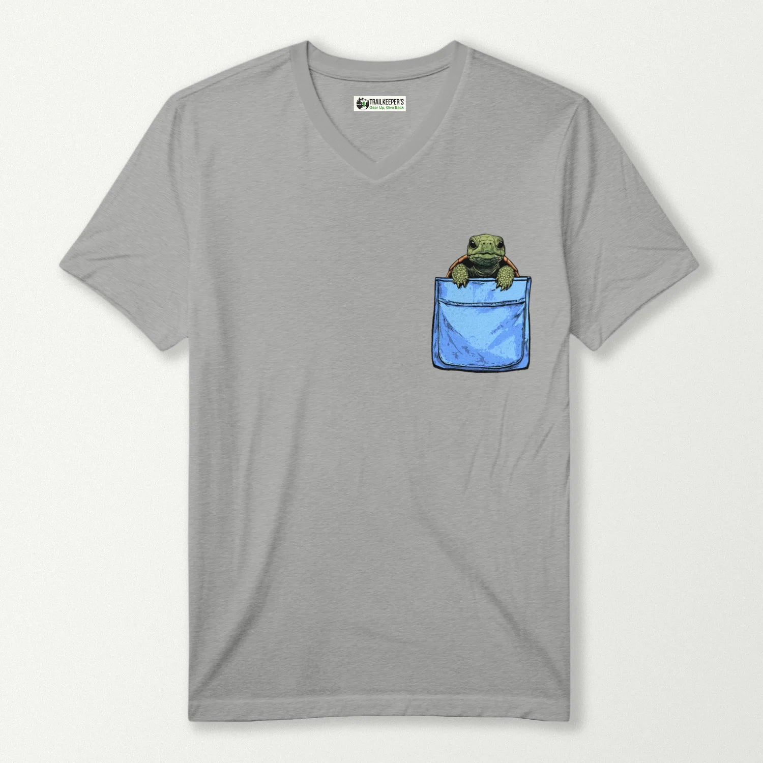 Tortoise In Pocket V-Neck T-Shirt